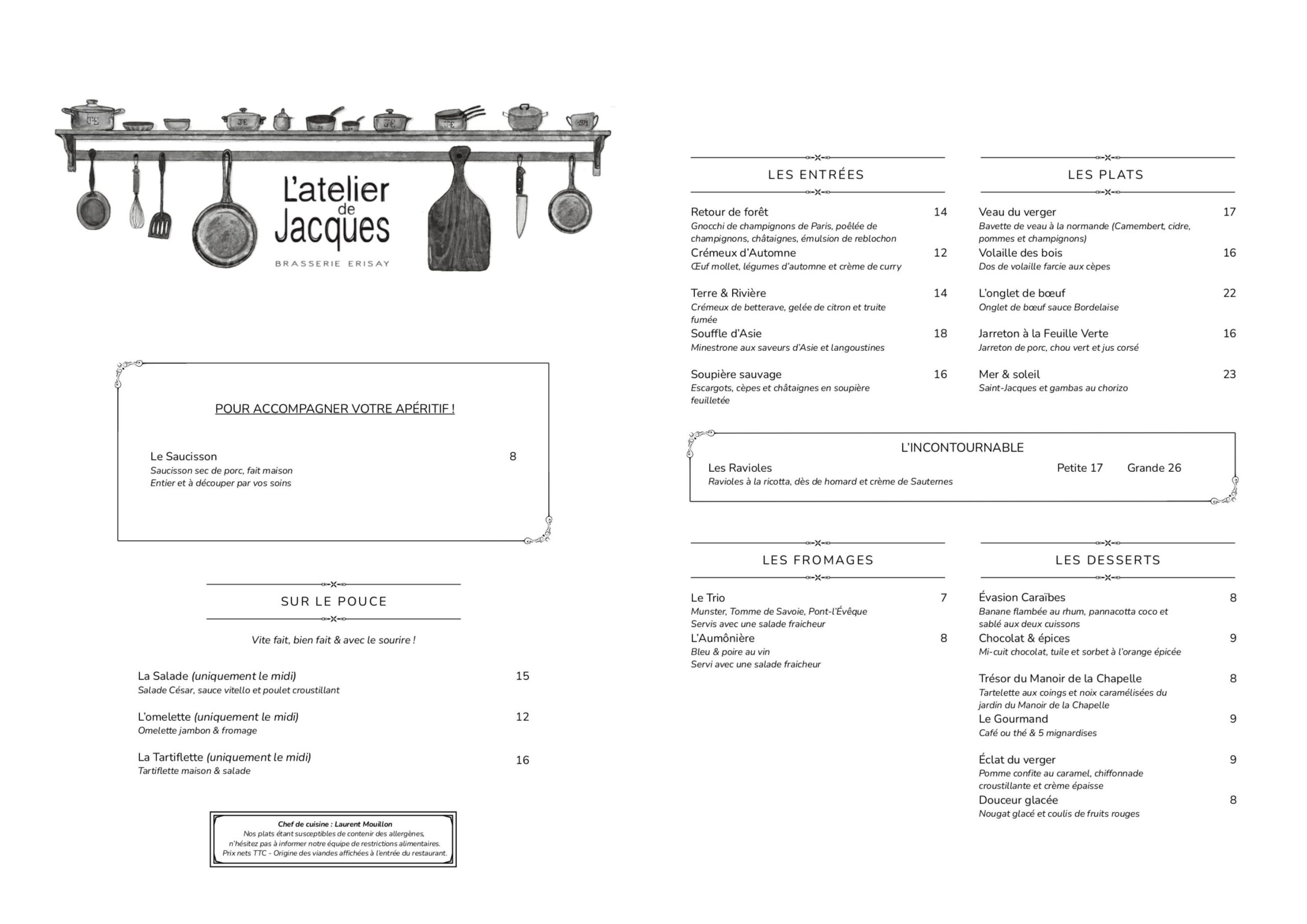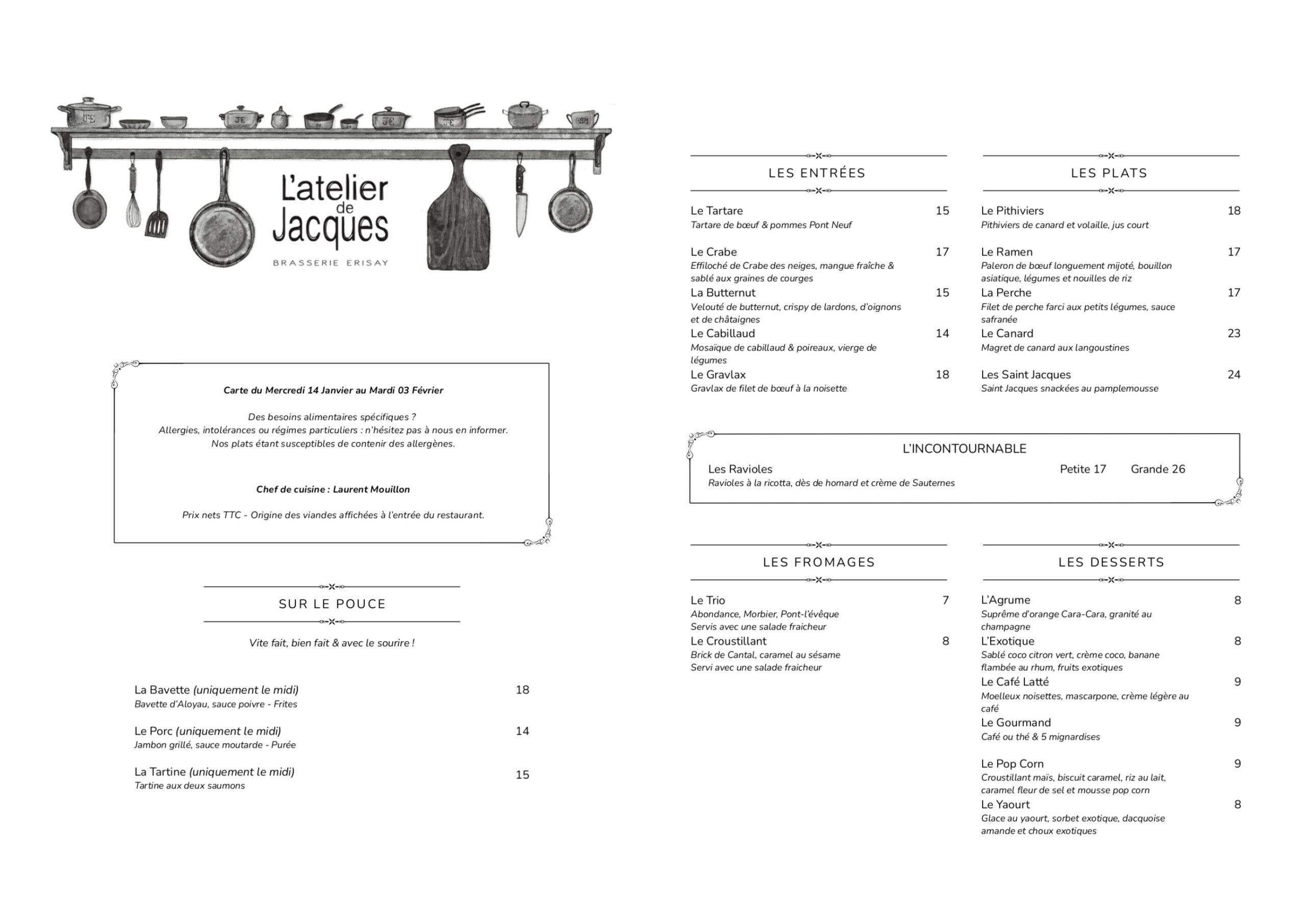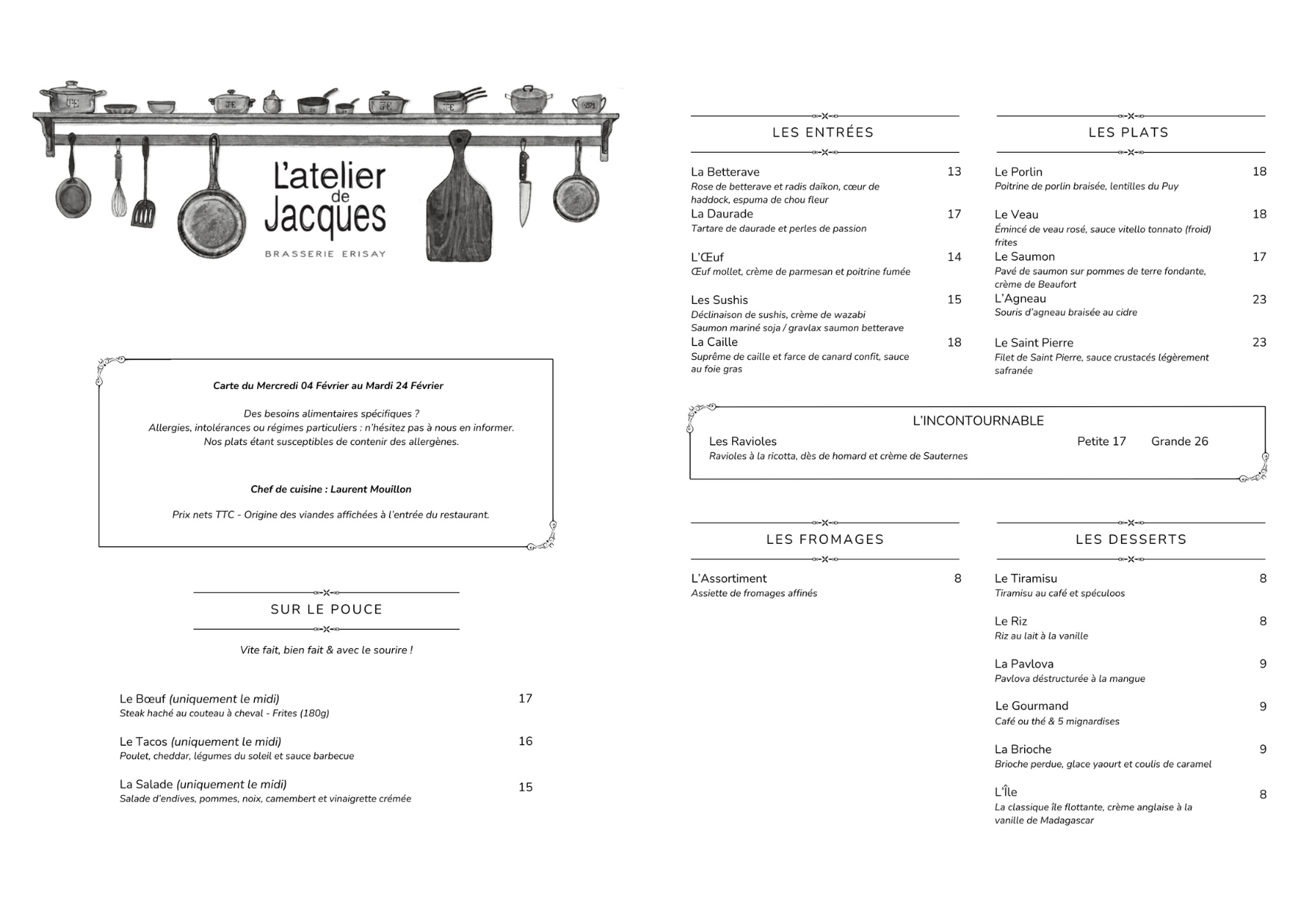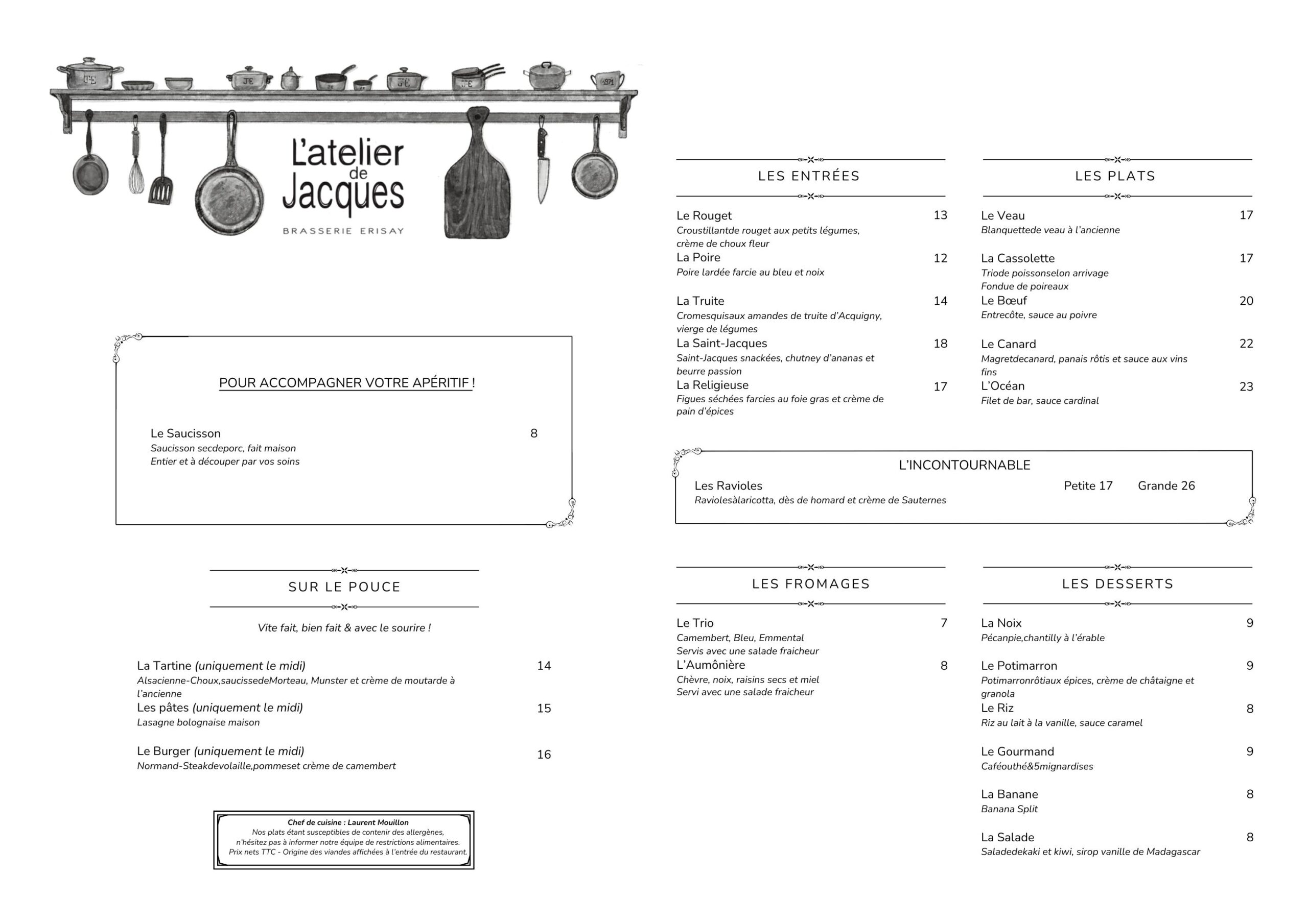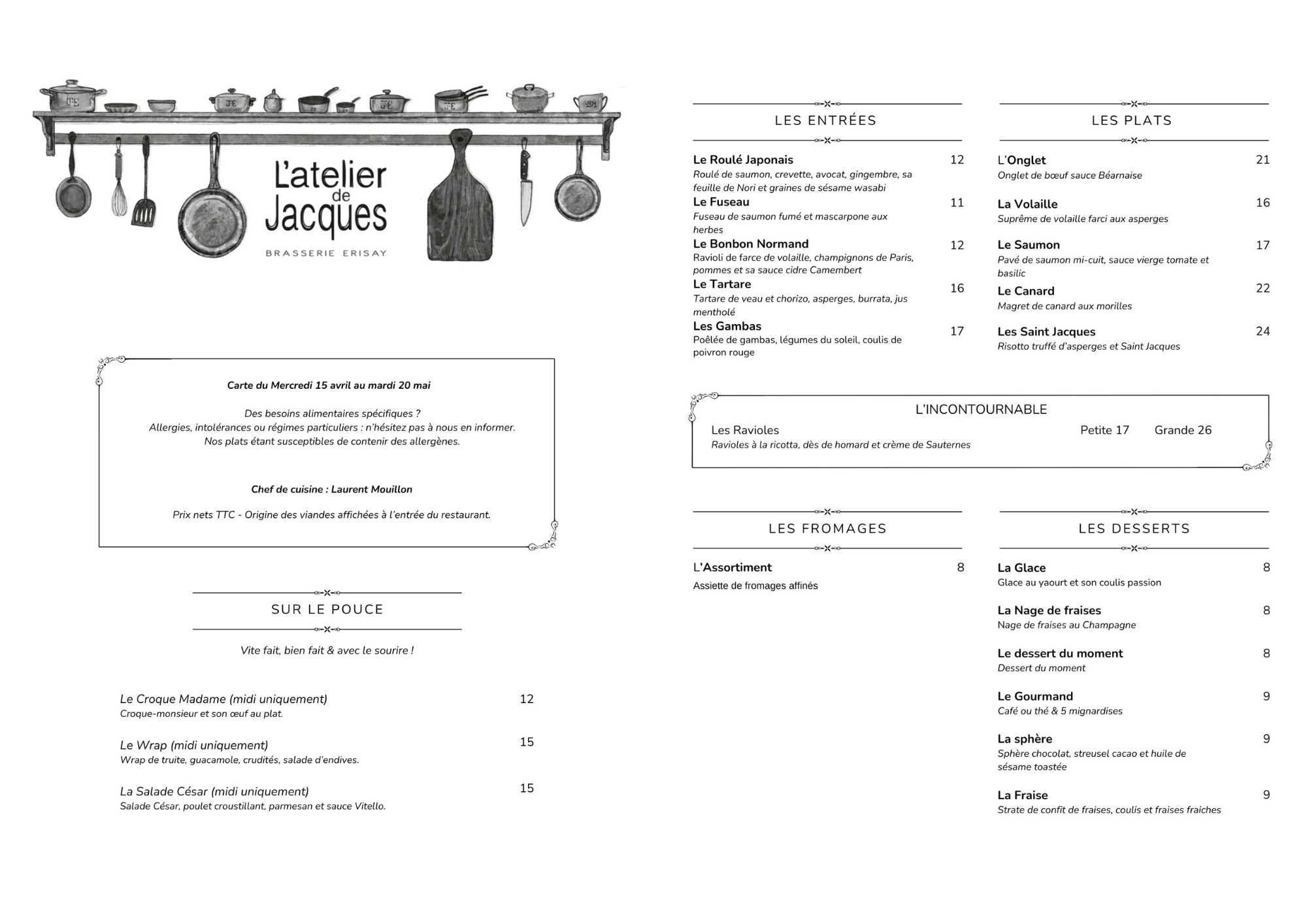 À l’Atelier de Jacque, la cuisine est authentique, revisitée toutes les semaines selon les inspirations du chef.